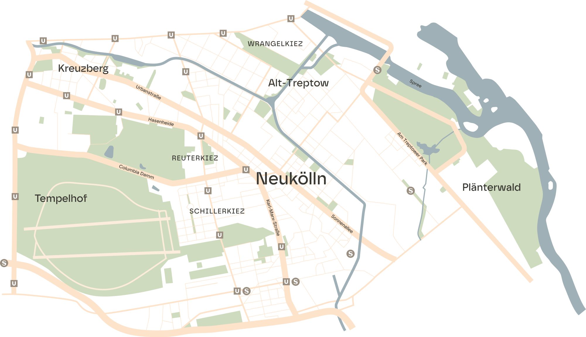 Die Elbestraße 36 liegt in Berlin-Neukölln, eingebettet zwischen dem Tempelhofer Feld und der Spree. Cafés, Restaurants und Einkaufsmöglichkeiten finden sich in der direkten Umgebung, ebenso wie Bus- und U-Bahn-Stationen, die eine schnelle Anbindung in alle Bezirke der Stadt ermöglichen.